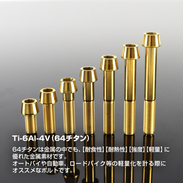 チタンボルト テーパーヘッド 六角穴付き キャップボルト M6×10mm~125mm ブラック JA4117CHOICE 【メール便可】
