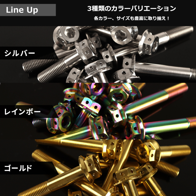 アプローチしにくい奥まった箇所にも使いやすく、ドレスアップ性も兼ね備えたカスタムボルトです。